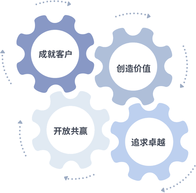 成就客户是一切决策的出发点,,,,创造价值是衡量所有工作的标准,,追求卓越是壹号平台做事做人的态度,,,开放共赢是壹号平台的格局也是最终的结果。。。。价值观的齿轮环环相扣,,推动着组织里的每个人不断向前。。