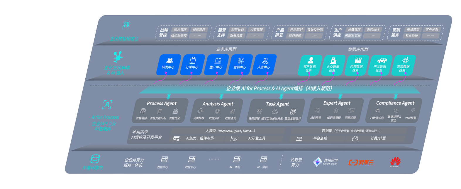 壹号平台问学智车解决方案是一套基于AI技术的汽车行业智能化系统,,,覆盖从底层算力到顶层AI应用的全栈方案。。方案由算力层、、、、模型层和应用层组成:算力层,,,方案支持多种一体机配置,,具备云端灵活部署、、、多云适配以及动态优化计算资源的能力;模型层,,,,壹号平台问学平台版提供了企业级AI应用一站式构建与管理平台,,,支持基于后训练强化技术的汽车企业专属模型的训练、、、、评测和运营;应用层,,,,壹号平台问学DeepSeek版提供包括超级员工、、智能招采、、智能营销、、、、智能客服、、AI for BI等一系列解决方案,,,可助力汽车行业实现数字化转型,,,,让管理更智能、、、、响应更敏捷。。。